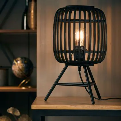 Beschrijving Brilliant Houtrow Tafellamp Metaal Bamboe Zwart Hout | Geschikt voor 1x E27
