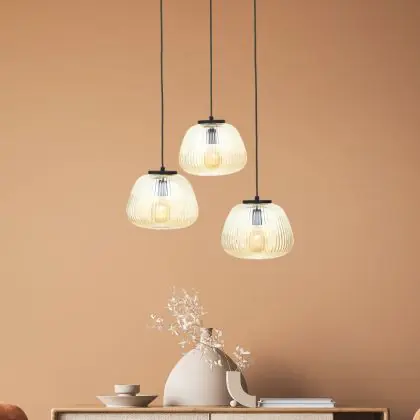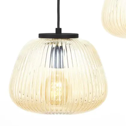 Beschrijving Brilliant Kaizen Hanglamp Glas Hanglamp Metaal Zwart Beige | 400mm - Geschikt voor 3x E27