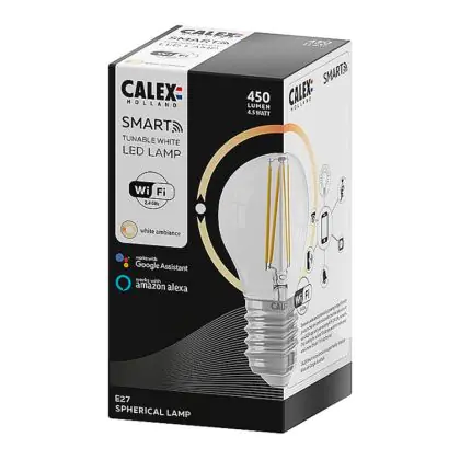 Je kunt ook meerdere Calex smart lampen koppelen aan onder meer een Google Home of Amazon Alexa apparaat. Hierdoor wordt het mogelijk om Calex verlichting met jouw eigen stemgeluid te bedienen. Door het geven van eenvoudige instructies als; ‘Hey Google, dim de lamp boven de tv’, heb je dit al binnen no-time geregeld! Tevens kun je deze kogelvormige E27 Calex Smart verlichting bedienen via een officiële Calex Smart afstandsbediening. Deze Calex lamp werkt ook op een wandschakelaar, maar niet op een dimmerschakelaar. Hou daar rekening mee. Ben je op zoek naar Smart verlichting met een andere fitting of in een andere vorm? Klik dan hier om ons volledige assortiment te bekijken!