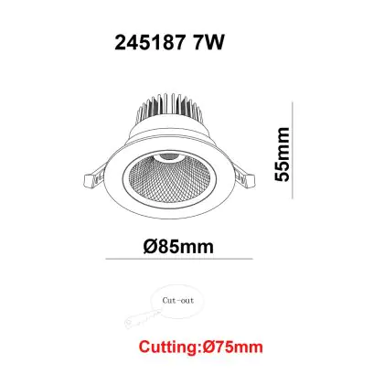 Beschrijving LED Downlight Rond Kantelbaar 7W 560lm 60D - 930 Warm Wit | 85mm - Zaagmaat 70mm - UGR <19