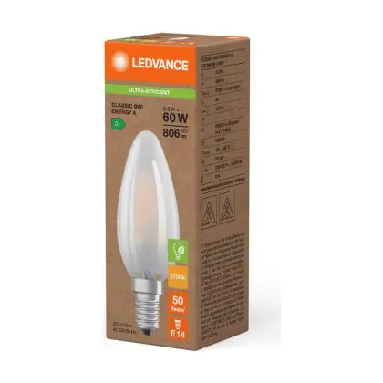Beschrijving Ledvance LED Classic E14 Kaars Filament Mat 3.8W 806lm - 827 Zeer Warm Wit | Vervangt 60W
