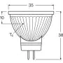 Beschrijving Ledvance Performance LED Spot Reflector GU4 MR11 4.5W 345lm 36D - 927 Zeer Warm Wit | Beste Kleurweergave - Dimbaar - Vervangt 35W