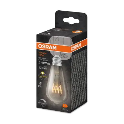 Beschrijving Osram Vintage 1906 LED E27 Edison Filament Helder 4.8W 470lm - 827 Zeer Warm Wit | Dimbaar - Vervangt 40W