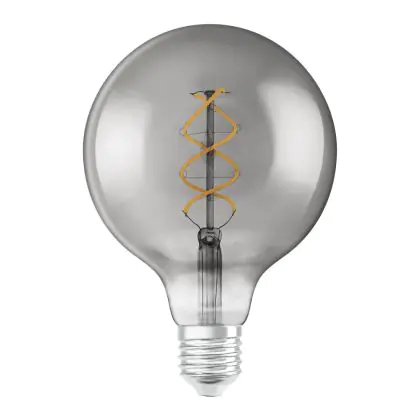 Beschrijving Osram Vintage 1906 LED E27 Globe Filament Smoke 125mm 5W 140lm - 818 Zeer Warm Wit | Vervangt 15W