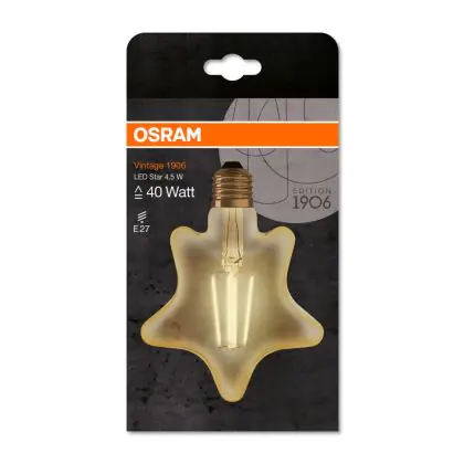 Beschrijving Osram Vintage 1906 LED E27 Star Filament Goud 4.5W 470lm - 825 Zeer Warm Wit | Vervangt 40W