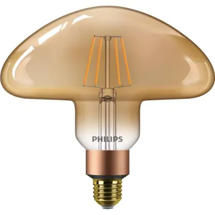 Beschrijving Philips Classic LED E27 Mushroom 200mm Filament Goud 5.5W 470lm - 818 Zeer Warm Wit | Dimbaar - Vervangt 40W