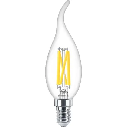 Beschrijving Philips MASTER LED E14 Gebogen-tip Kaars Filament Helder 3.4W 470lm - 922-927 Dim To Warm | Beste Kleurweergave - Dimbaar - Vervangt 40W