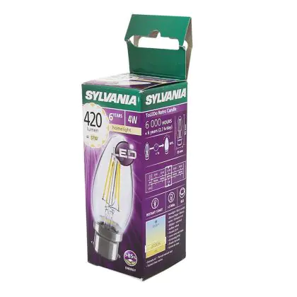 Beschrijving Sylvania ToLEDo B22 Kaars Filament Helder 4W 420lm - 827 Zeer Warm Wit | Vervangt 40W