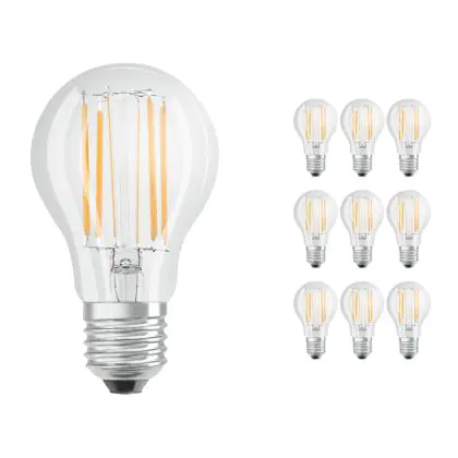 Beschrijving Voordeelpak 10x Ledvance CLASSIC LED E27 Peer Filament Helder 7.5W 1055lm - 827 Zeer Warm Wit | Dimbaar - Vervangt 75W