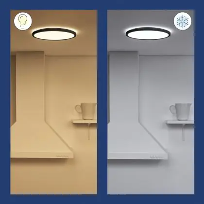 Denk ook goed na over de plaats waar je jouw nieuwe LED plafondverlichting wil ophangen, in combinatie met de juiste kleurtemperatuur. Zo geven 2700 Kelvin (extra warm wit) en 3000 Kelvin (warm wit) wat zachter en aangenamer licht. Deze tint is daarom goed geschikt voor gezellige buitenplaatsen of algemene ruimtes zoals een gang, lift, hal of overloop. 4000 Kelvin (koel wit) oogt qua tint wat feller en frisser en is daarom niet echt geschikt als sfeerverlichting, maar vooral als functionele verlichting. Denk daarbij aan vergaderzalen, gymzalen, werkkamers etc. Deze LED plafondlamp heeft als kleurtemperatuur: 2700K - 6500K Afstembaar Wit. Wist je dat het online kopen van LED plafondlampen bij Lampdirect als zakelijke klant extra voordelen met zich meebrengt? Lees er hier alles over.